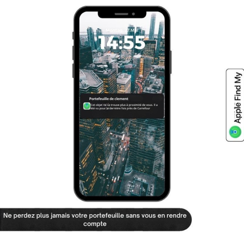 Grâce à la connexion à l’application Apple Find My ou FindThing, vous localisez votre portefeuille en temps réel, où que vous soyez – même à l’autre bout du monde.